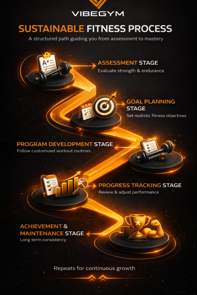 Sustainable fitness programs emphasize gradual progress, realistic goals, and long term habit formation rather than short term intense results.